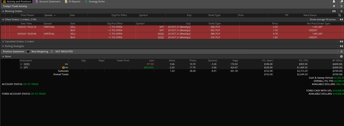 Note: The color Square below check the market conditions to open the 15 SPY Put Spread: GREEN means conditions to open trades are met; RED means conditions are NOT met!