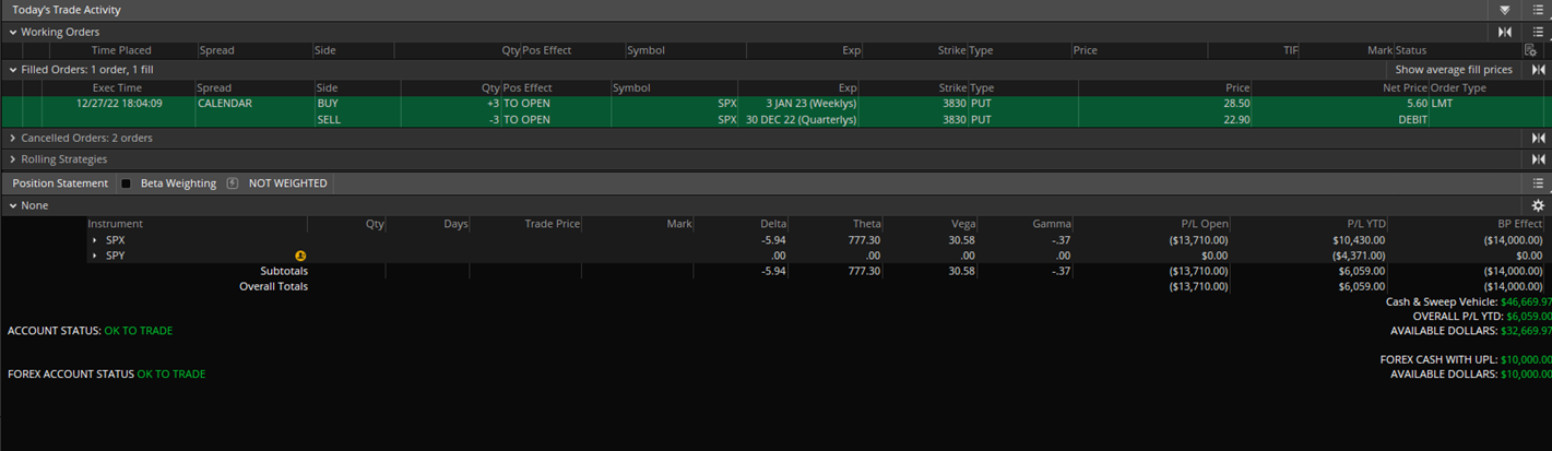 With the trade at a record high, trade becoming Delta negative, and SPX continuing to recover, I preferred to close the trade and take the big profit. Then, like always, I will use the free-up funds to open another SPX best Trade far out in time to reduce the overall portfolio risk.