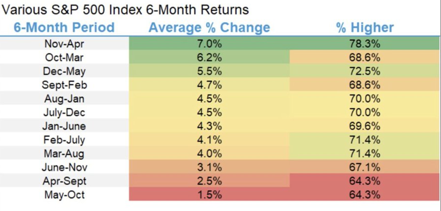 In just 1 week, markets will enter the Best 6 Month Period to own stocks, November - April.