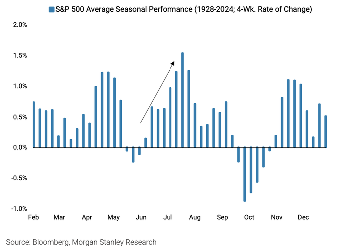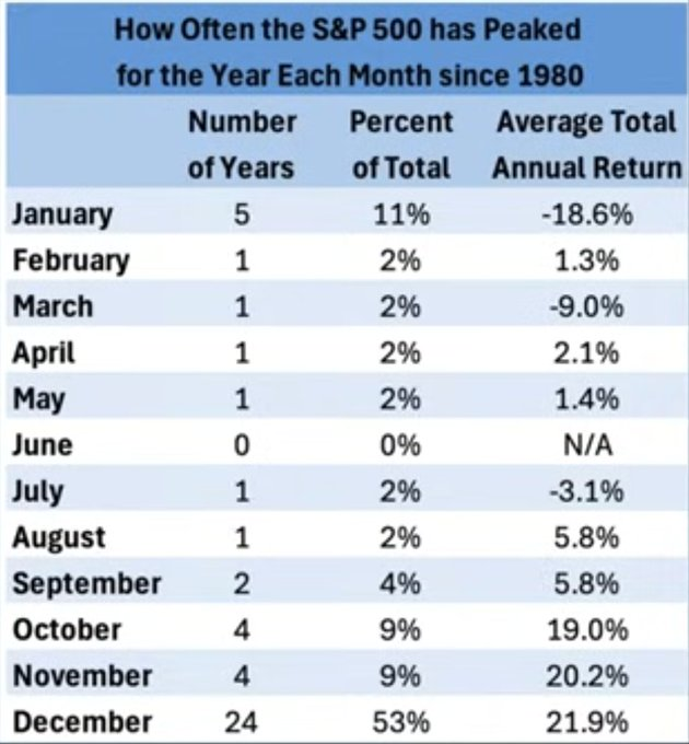 A June market S&P500 peak? Unlikely! Since 1980 there was no June peak! That leaves a 98% probability the market will achieve another new all-time high sometime later in 2025.