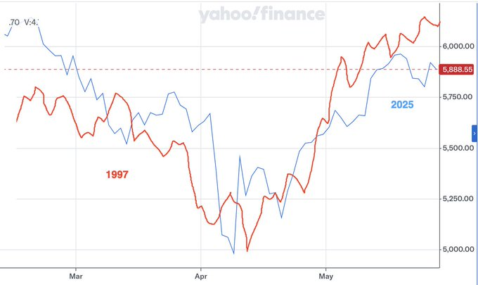 Below is chart comparing a similar correction in 1997 with 2025