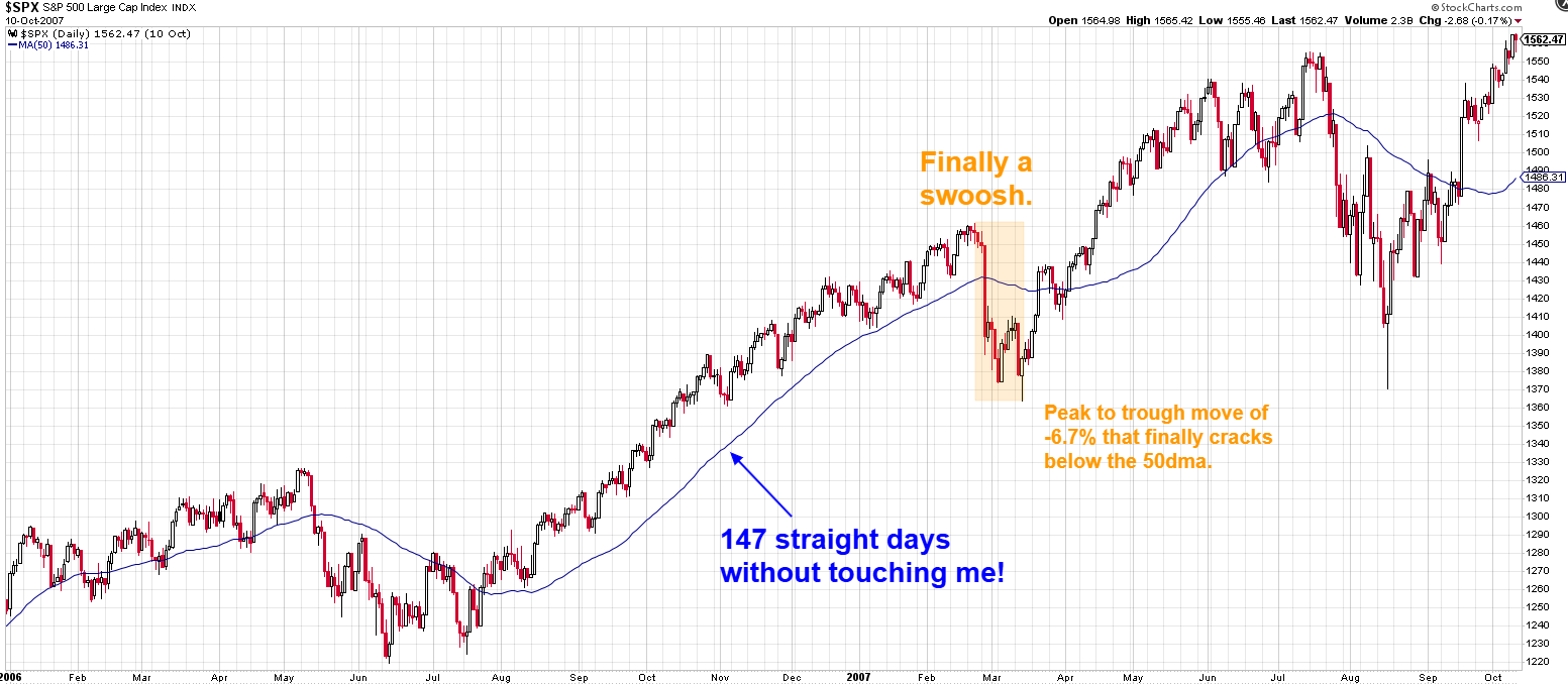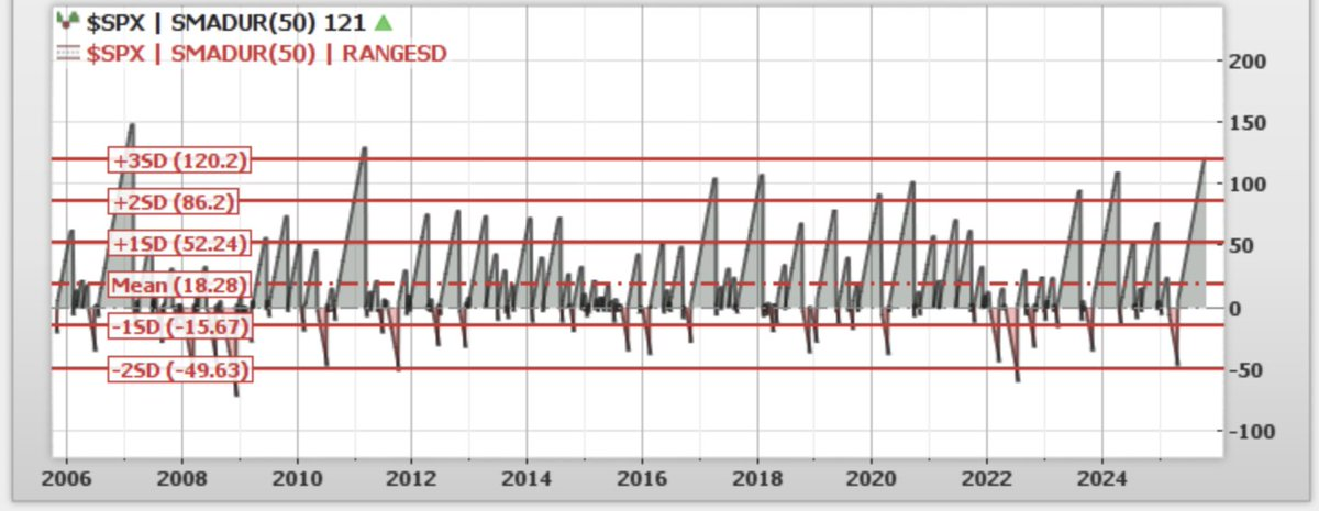 SPX is now on 121 day streak above 50-DMA. This is actually the 3rd longest streak since 2007. The 2011 streak ended 130 days. Nevertheless, both streaks have ended with at least -20% declines (2011 intraday) thereafter. When we look for excess in markets, that ALWAYS a mean-reverting. Be aware of the excess move up!