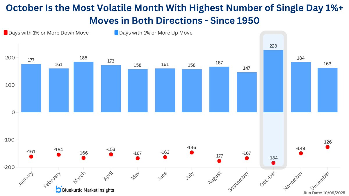 This continues to be true, after one more week in October... Bluekurtic research summarizes the Volatility along the year. October is the most volatile month for the S&P 500, with the highest number of single-day 1%+ moves in both directions. Big swings, both ways, with the VIX staying above 20 and VIX Futures in Backwardation.