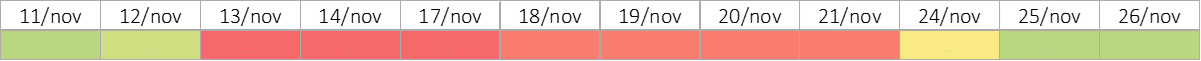 YELLOW – Market is changing its volatility status or in a mid-point that can continue its move (ex, from low to high Volatility) or retract (ex, low to mid and then move back to low volatility)